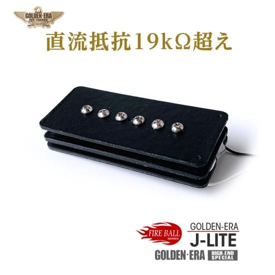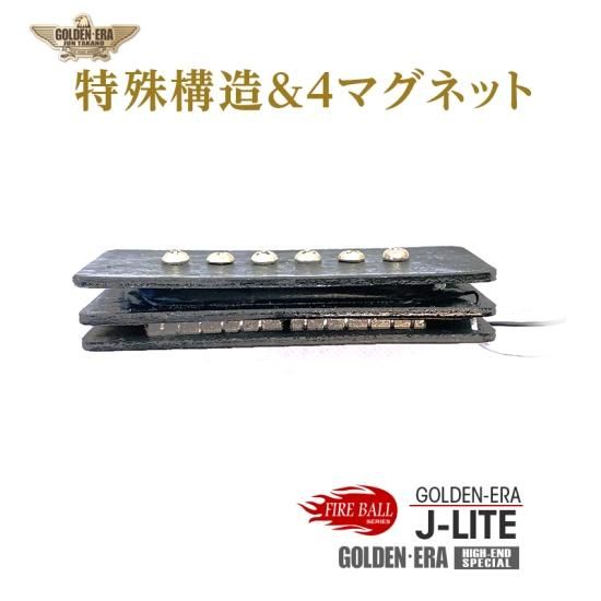 このシリーズ全般に用いられたテクノロジーはほぼ共通ですがやはり外観同様それぞれのカラーがあります。シリーズ中最も強大な出力を持つこのJ-LITEにはほぼ大型と言えるマグネット4枚がセットされています。このアルニコマグネットには磁力線放出の効率化を高めるための切削加工が施されていて通常のものに比べて微細振動をも完璧に捕捉する特殊なものです。コイル部には最適と思われる被覆と線径のものをかなりオーバーワウンドしていてその直流抵抗は19kΩ越えとなっていますが前述の磁力線放出改善により歯切れを失うどころかパーカッシブなプレイにも最適なトレブルとパワーを備えています。