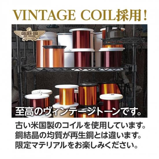 現在では入手困難な高野 順氏秘蔵の米国製N,O,S,ヴィンテージコイルを限定1セット完全手巻し、さらに60s初期GIBSONから調達したアルニコVヴィンテージマグネットを使用して当社の59年PAF再現モデルのGOLDEN-ERA TRI-TONEに組み込みました。高野 順氏秘蔵の米国製N.O.S.ヴィンテージコイルの完全手巻は勿論、ボビンのリード線も網線も50Sのヴィンテージ物です。近頃高額化が進んでいるパーツを惜しみなく使ったものです。ヴィンテージパーツがある時にスポット商品ですが今回は限定1セットとさせて頂きます。
